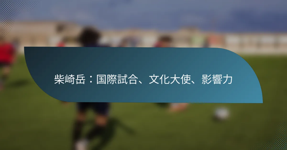 柴崎岳は日本サッカーにおいて重要な存在として確立されており、ワールドカップのような名誉ある大会を含む数多くの国際試合で日本代表として活躍しています。彼のアスリートとしての業績を超えて、文化大使としての役割も果たし、影響力を使って日本文化を促進し、地域社会への outreach イニシアティブを通じて国際的なつながりを育んでいます。